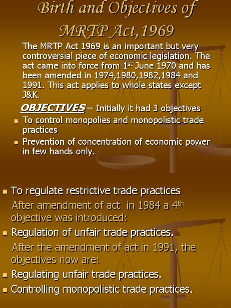 Law Monopolies And Restrictive Trade Practices Act Mrtp The mrtp act, 1969 also provides for appointment of a director general of investigation and registration for making investigations for the purpose of inquiries by the mrtp commission and for.