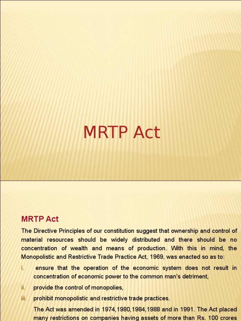 Mrtp Act Full Form : Are not specifically mentioned in the mrtp act.